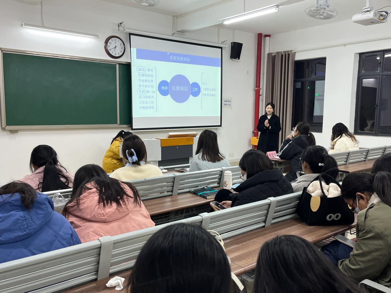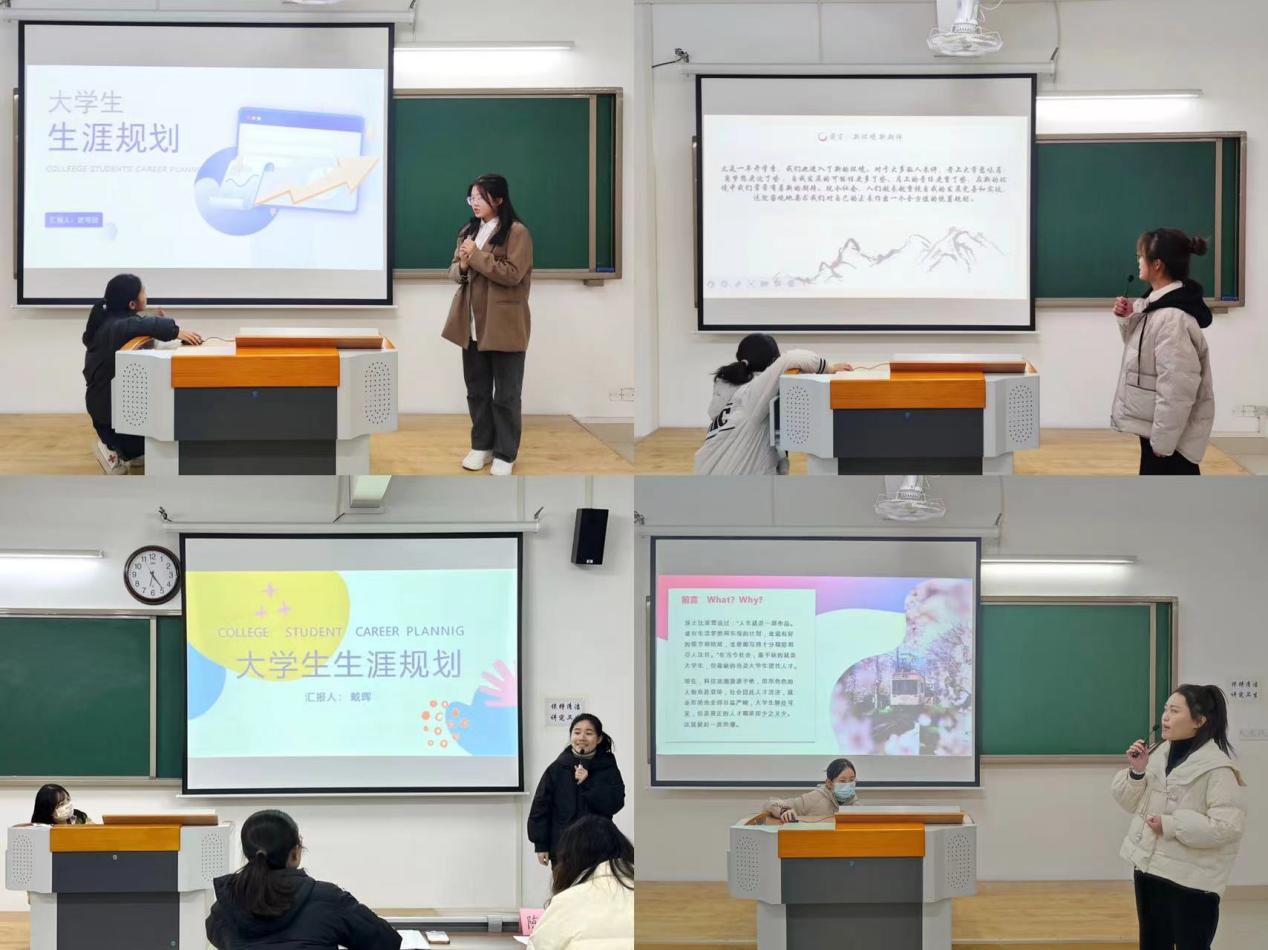 为引导同学们树立正确的人生观、价值观、成才观,增强其求实创新、励志图强的意识,科学规划自己的大学生涯,教育学院自10月中旬以来在全体2022级普通本科学生中开展了“大学生涯规划设计大赛”活动,活动得到了同学们的积极响应,同学们对自己的大学期间的学习生涯做了认真规划,并在班级初赛上进行了PPT展示。12月2日下午,在2号教学楼410、411、412教室分组进行了“2022级普本学生大学生涯规划设计大赛”决赛,决赛评委由辅导员老师担任。