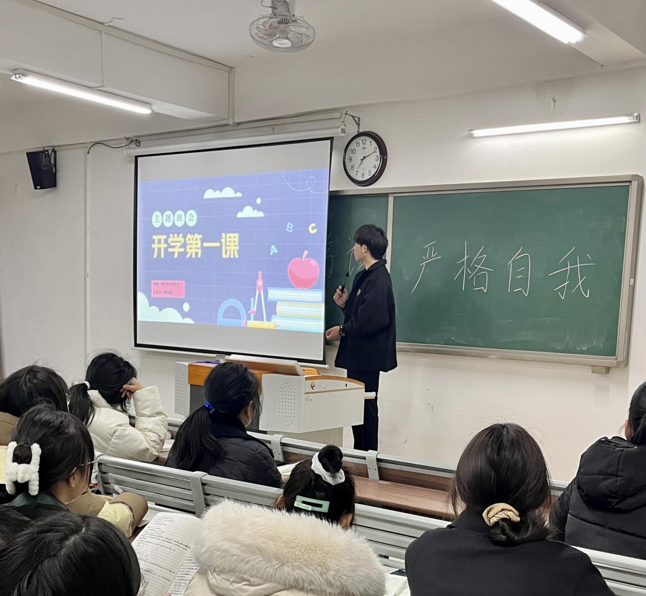 为有序开展学院新学期的各项工作安排,引导同学们制定合理的学期规划,提高安全意识,科学高效地安排好新学期的学习和生活,2月20日晚上7点,教育学院全体辅导员组织各专业学生在一号教学楼召开了2023学年新学期“开学第一课”主题班会活动。