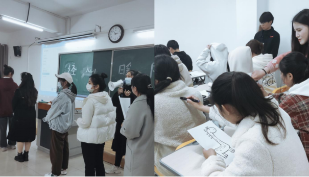 活动初始,各年级心理委员和部分学生会成员作为工作人员分发纸笔给参与学生,由石园园老师介绍活动规则,让学生按照规则完成寻人信息卡游戏。随后,展示该环节所获签名最多的信息卡;紧接着,石园园老师组织工作人员将学生分成8组,让学生开动智慧完成排长龙队比赛游戏;随后,石园园老师安排工作人员再次分发白纸,让学生将写下自己的问题或烦恼后上交,再随机分发给其他组。之后,拿到问题纸条的学生积极上讲台谈自己的想法;活动最后,石园园老师指导工作人员示范最后一个游戏的规则,让学生按小组从后往前,在成员背上每人依次完成本组的画图任务,逐个展示各小组画出的图像。