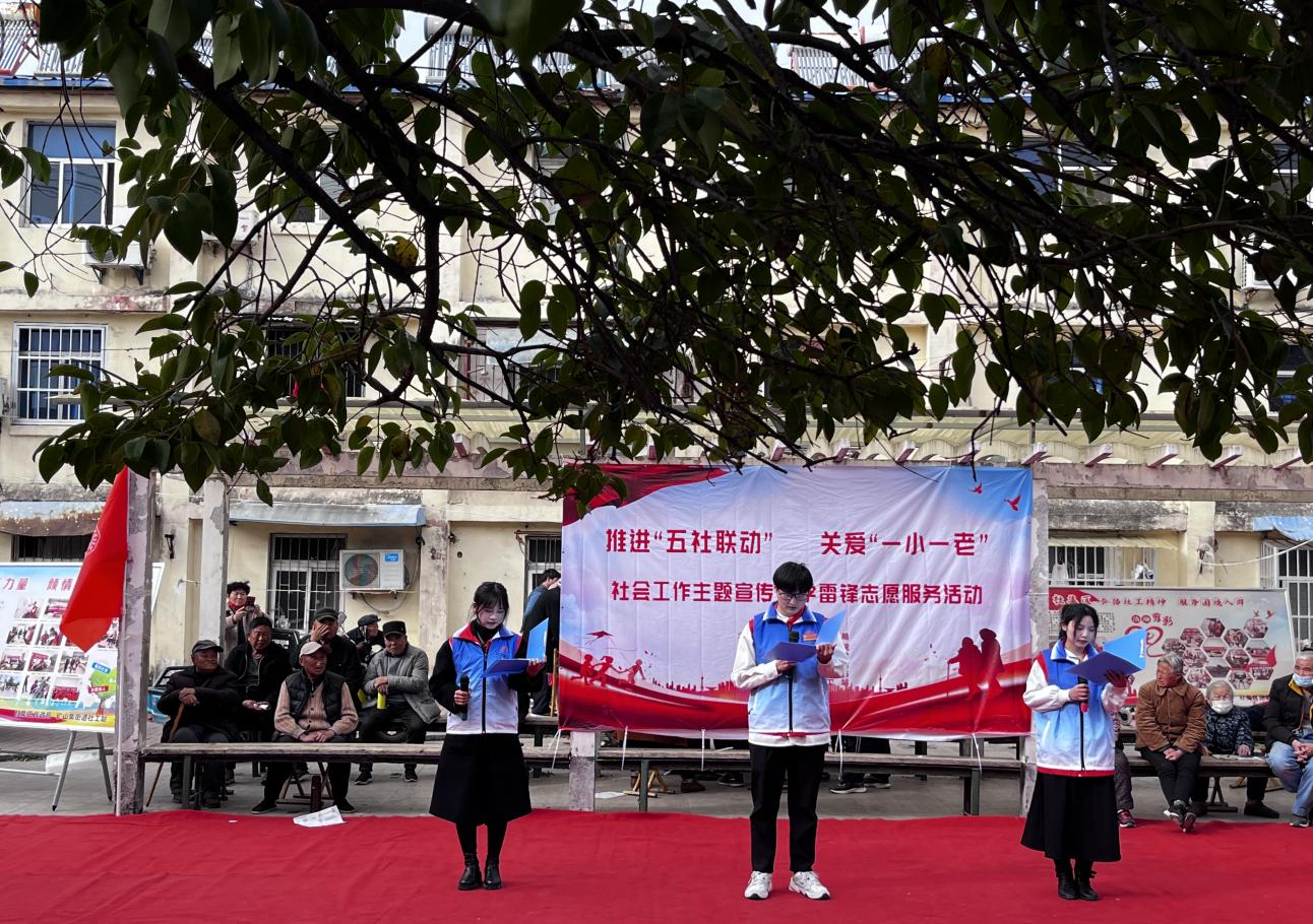 为深入贯彻落实党的二十大精神,教育学院2022级汉语言文学专升本5班于3月22日前往淮北市朔里矿矿业社区小广场参加社区社工关爱“一小一老”社会工作主题宣传暨学雷锋志愿服务活动。