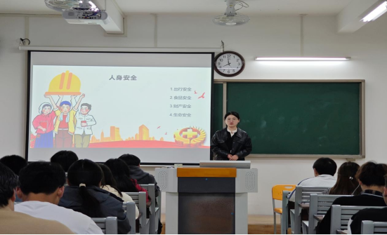 班会上,各班辅导员首先传达学校“五一”假期通知,学习学校下发的《关于做好“五一”劳动节假期学生安全教育管理工作的通知》精神。接着,以假期安全教育为主线,辅导员针对防范电信网络诈骗、人身安全、交通安全、财产安全、饮食安全、网络安全等方面,进行了教育引导,提高了同学们安全意识,增强了同学们安全防范能力。