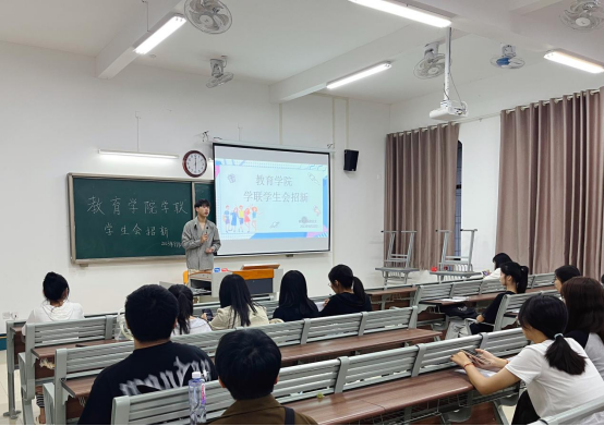 为丰富校园文化生活,发展学生会新成员,优化学生管理队伍建设,积极为23级新生提供才华展示、才能锻炼的舞台,9月22日下午6点,教育学院学联学生会招新活动在一号教学楼113、114、115教室进行,教育学院书记助理黄莹莹、团总支副书记许海涛、辅导员郭鸿鑫老师到达招新现场进行指导工作。