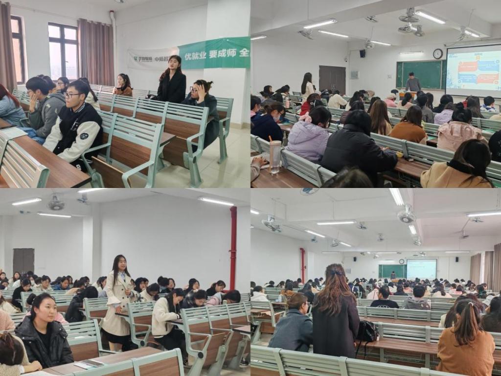 为进一步推进毕业生就业指导工作,帮助毕业生尽快了解就业形势、增强择业意识,提高大学生就业竞争力,教育学院于11月22日下午3点在1号教学楼420和521教室举办教资面试暨就业讲会,邀请中公教育、华图教育机构宣讲,共有272名同学参加本次宣讲活动。