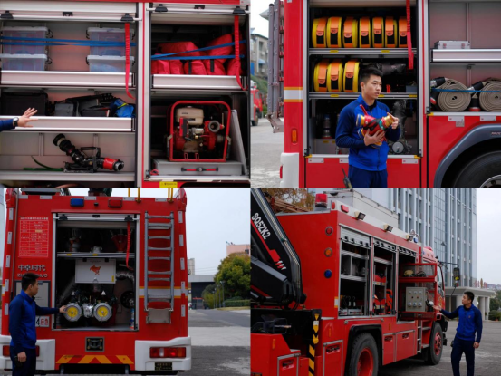 接着,消防员们带领同学们近距离了解消防车及其配置器材的相关情况,为同学们详细介绍了消防车的功能。