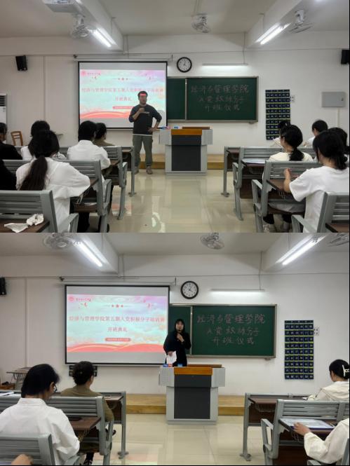 为加强我院入党积极分子培养教育,提高入党积极分子培训的针对性和实效性,4月17日下午4时,经济与管理学院于二教522举办第五期入党积极分子培训班开班典礼。学院党总支书记、院长吴玲,经济学学生支部书记员禹辛、管理学学生支部书记石园园、2022级专职辅导员张雨停及108名入党积极分子参加本次开班典礼,开班典礼由王绎程主持。