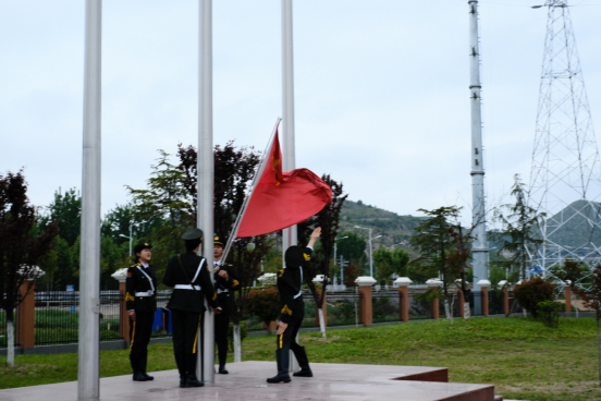 师生们沐浴着清晨的阳光,在庄严的国歌声中向冉冉升起的五星红旗行注目礼,向伟大的祖国致以深情的祝福。