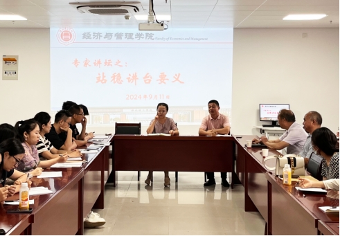 为推动青年教师教学水平提升,助力其更快适应并“站稳”讲台,经济与管理学院于2024年9月11日下午在725室举办首场专家讲坛---“站稳讲台要义”,学院银龄专家代凤礼和徐公伟两位教授作讲坛主讲人开讲,进行教学经验分享、助力青年教师成长。活动由院长吴玲主持,学院全体教师参加。