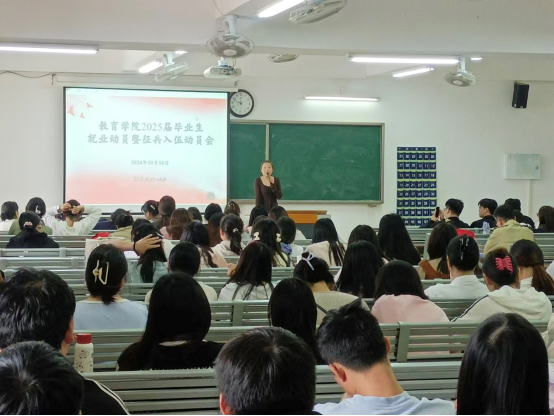 为抢先谋划抓实2025届毕业生就业工作,积极引导毕业生树立正确的就业观念,促进毕业生高质量充分就业,10月15日至17日教育学院47个班级分别由带班辅导员老师分别主持召开了2025届毕业生“就业指导、就业动员”主题班会,班会由11名带班辅导员老师主持。