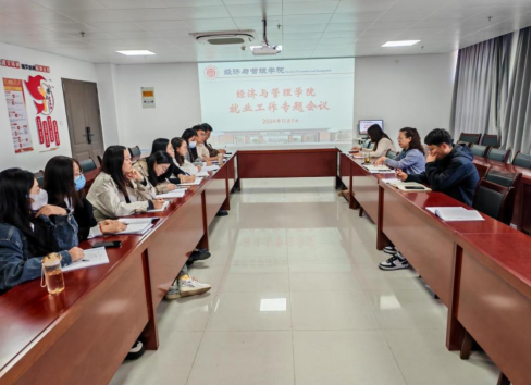2024年11月1日,经济与管理学院在725会议室召开了就业工作专题会议和校企合作月总结会议。出席会议的有学院党委书记、院长吴玲,书记助理叶赵强,团总支书记禹辛,所有毕业班辅导员以及就业专班成员。会议由吴玲院长主持。