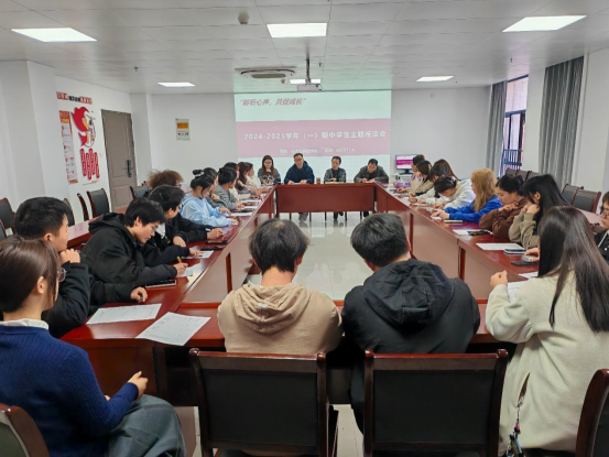 2024年11月7日下午,经济与管理学院召开了“聆听心声,共促成长”为主题的2024-2025学年第一学期期中学生主题座谈会。座谈会根据不同专业划分为两个会场,参会人员包括经济与管理学院院长吴玲、院长助理张珊、各教研室主任,以及学院各级各班的班长和学习委员。会议由院长吴玲和院长助理张珊分别主持。