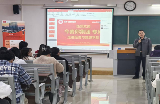 今麦郎安徽片区人事经理赵自成亲临现场,详细介绍了公司的招聘计划和岗位要求。他通过生动的案例和具体的数据,展示了今麦郎集团的发展实力和良好前景,激发了同学们的求职热情。宣讲过程中,同学们积极提问,与招聘人员进行了深入交流。他们不仅关注岗位要求和薪酬福利,还对企业文化、员工成长路径等方面的问题表现出浓厚的兴趣。招聘人员耐心解答,现场气氛热烈而融洽。
