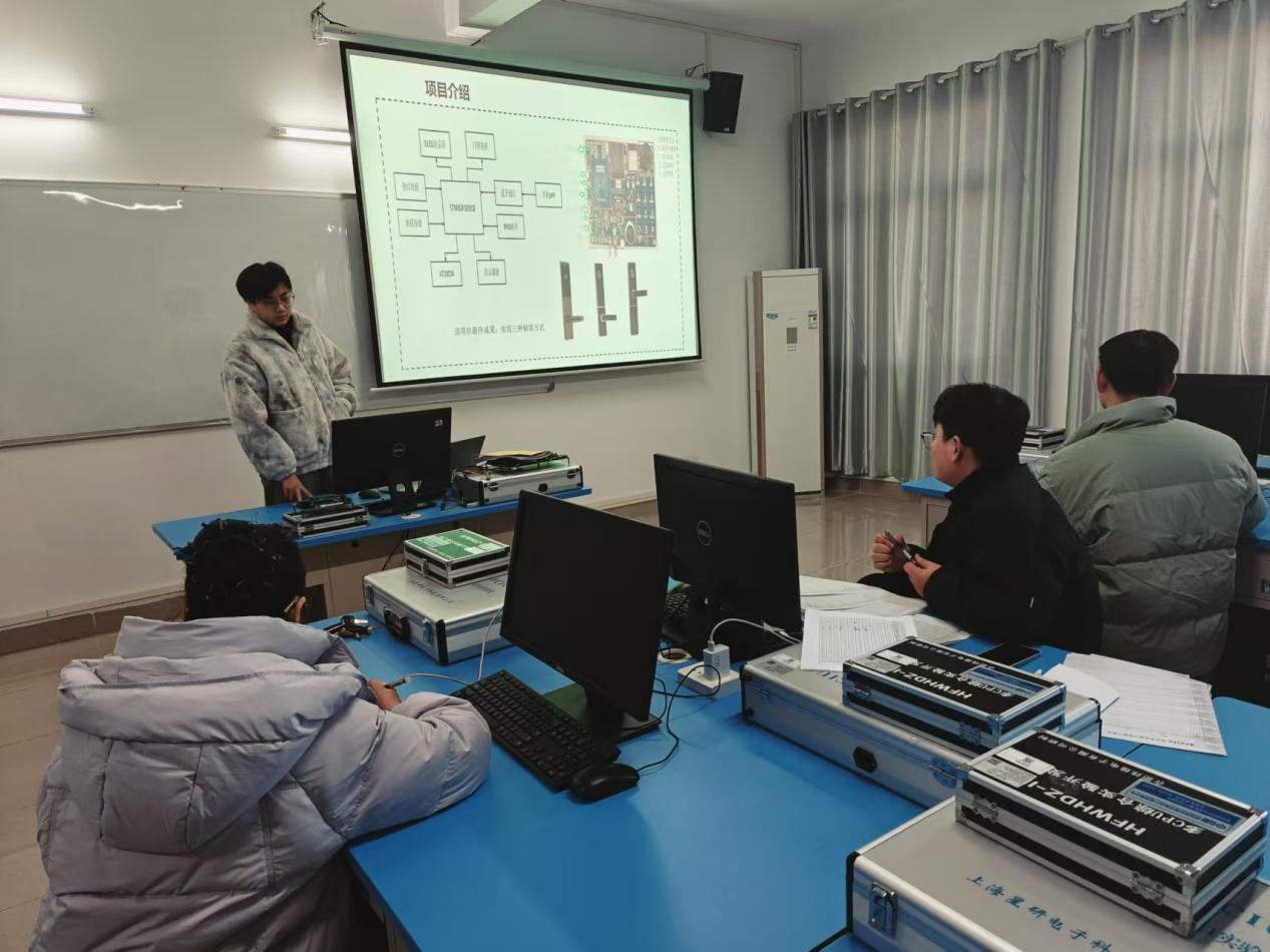 技术展示方面,学生们深入探索了STM32微控制器的应用,包括GPIO模块配置、KEIL环境下工程开发、STM32寄存器使用等,并通过实例演示了按键控制设备操作等技巧。此外,还展示了串口通信等技术,体现了学生在嵌入式系统开发领域的专业素养。