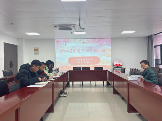 2月21日下午4点,学院党总支召开会议。会议旨在确保新学期党建工作的高质量推进,为新学期的教育教学工作提供坚强的政治保障。会上,与会人员进行了理论学习,同时就近期即将开展的基层党组织书记抓基层党建工作述职评议考核工作进行了部署与交流。吴玲院长希望各支部书记要凝练支部工作特色,认真撰写总结,并增强工作理念,依靠党建统领促发展。她强调,要强化业务工作能力,夯实过程,争先创优。此次党总支会议的召开,不仅为新学期的党建工作指明了方向,也为学院的全面发展提供了坚强的政治保障。