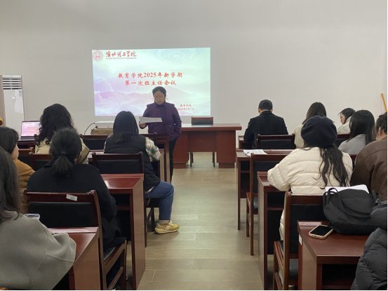 为统筹推进新学期学生管理工作,确保教育教学任务有序开展,3月7日中午,教育学院在艺术楼102会议室召开2025年春季学期班主任工作交流会。会议由学院书记助理黄莹莹主持,分管副书记孟向红、全体2024级班主任和辅导员老师参会。