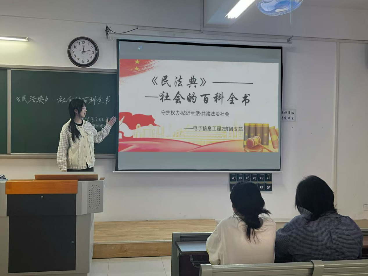 为深入学习贯彻习近平法治思想,增强团员青年法治观念,营造尊法学法守法用法的良好氛围,电子与信息工程学院于2025年5月组织开展了“民法典宣传月”主题团日系列活动。此次系列活动形式多样、内容丰富,有效提升了团员青年对民法典的认知水平,取得了良好成效。