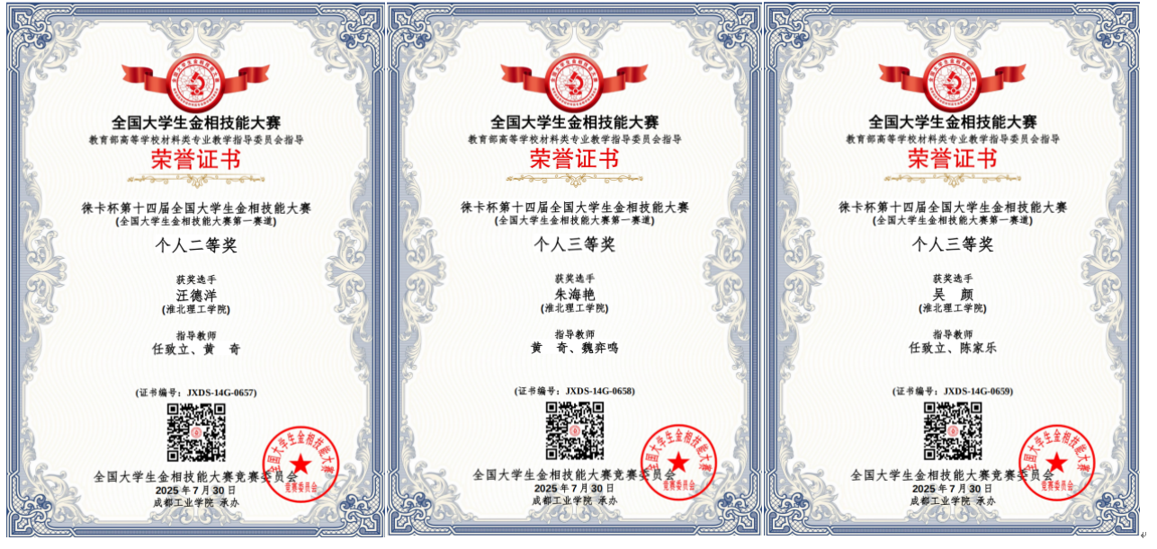 7月25日至30日,由教育部高等学校材料类专业教学指导委员会主办、成都工业学院承办的第十四届全国大学生金相技能大赛暨第三届金相大会圆满落幕,来自清华大学等562所大学的2000名选手同台竞技、各展风采。beat365学子技能大赛第一赛道决赛中,面对全国555所高校的1544名参赛选手,beat365学生汪德洋荣获国家二等奖、学生朱海艳荣获国家三等奖、学生吴颜荣获国家三等奖!