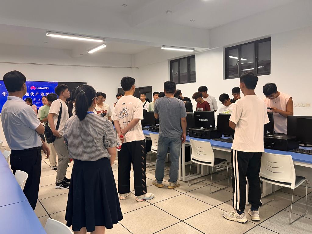 作为本次参观的亮点,华为现代产业学院的四个联合实验室——5G+行业应用实验室、人工智能实验室、鸿蒙智联创新实验室和鸿蒙应用开发实验室,吸引了众多同学驻足。学院于暑期期间组织开展的华为ICT大赛专题培训已取得显著成效,目前共有14名学生成功获得华为认证,其中包括13名HCIA证书获得者与1名HCIP证书获得者,作为本次参观的亮点,华为现代产业学院的四个联合实验室——5G+行业应用实验室、人工智能实验室、鸿蒙智联创新实验室和鸿蒙应用开发实验室,吸引了众多同学驻足观摩。这些实验室不仅是前沿技术的实践平台,也是学院推进产教融合的重要载体。值得一提的是,学院于暑期开展的华为ICT大赛专题培训已取得扎实成效,目前共有14名学生成功获得华为认证,其中包括13名HCIA(华为认证ICT工程师)证书获得者与1名HCIP(华为认证ICT高级工程师)证书获得者,充充分体现了学院在产教融合与协同育人方面的扎实成效。