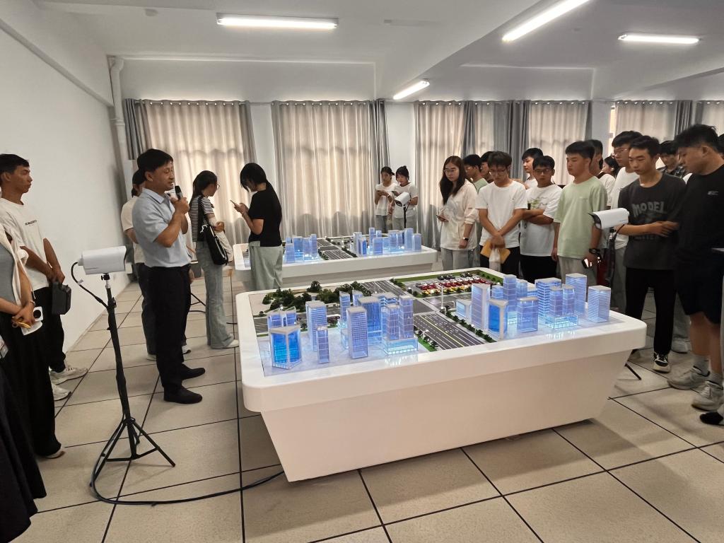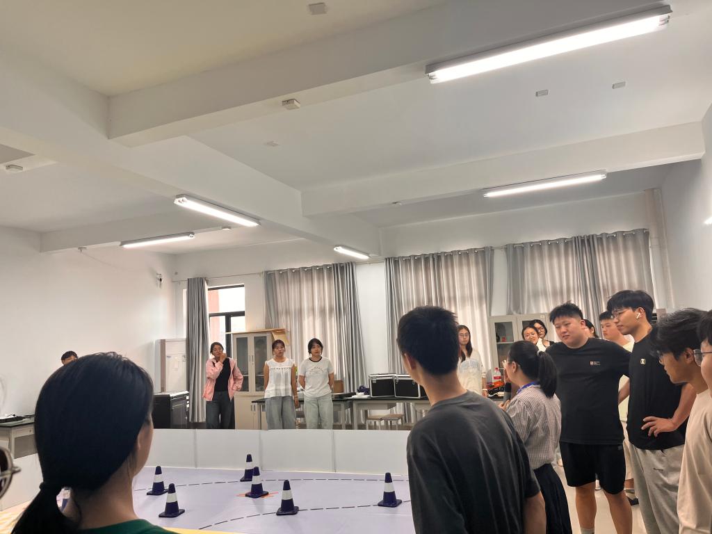 在创新实验室内,同学们近距离参观了学生团队在暑期刚刚结束的第二十届全国大学生智能汽车竞赛中获得全国第一名所使用的竞赛地图及获奖作品。指导老师以这一优异成绩为例,介绍了学院近两年在多个省级和国家级学科竞赛中取得的优异成绩,并鼓励2025级同学继承创新精神,踊跃参与科技赛事,全面提升实践能力。
