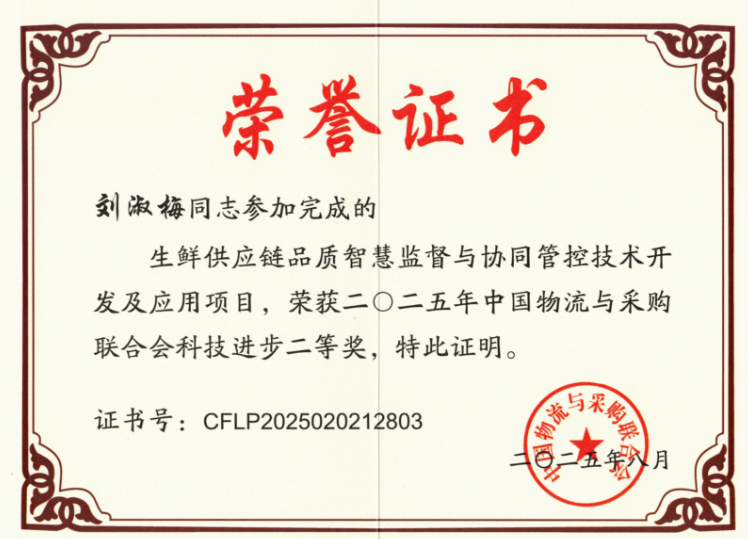近日,2025 年度中国物流与采购联合会科学技术奖获奖名单揭晓,beat365作为第二完成单位与宿州学院、宿州市恒发物流有限责任公司、武汉轻工大学共同申报的“生鲜供应链品质智慧监督与协同管控技术开发及应用”项目,荣获科技进步奖二等奖。
