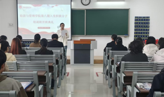为深入学习贯彻习近平新时代中国特色社会主义思想,落实全面从严治党新要求,严把党员发展“入口关”,2025年11月14日,经济与管理学院第八期入党积极分子培训班开班典礼在二教322教室隆重举行。管理学和经济学学生党支部书记、青年委员和全体86名入党积极分子共同参加,开班典礼由郑凡主持。