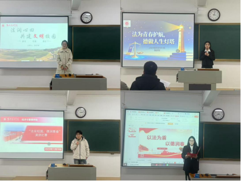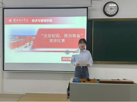 为推进法治教育与德育融合,营造平安文明校园,引导学生树立法治信仰与高尚品德。经济与管理学院于11月19日在二教301开展了“法安校园,德润青春”主题演讲比赛。