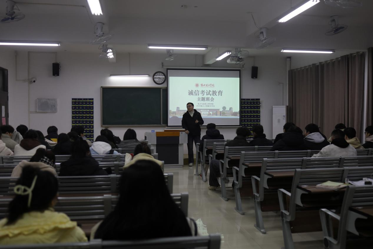 期末考试临近,为进一步加强学风建设,严肃考风考纪,营造公平、公正、诚信的考试环境,近日,电子与信息工程学院各班级陆续组织开展“严肃考风考纪,树立优良学风”主题班会活动。本次活动覆盖全院各年级、各专业,旨在引导学生树立正确的考试观念,自觉遵守考场纪律,以真实成绩展现学习成果,以诚信品质彰显当代大学生风貌。