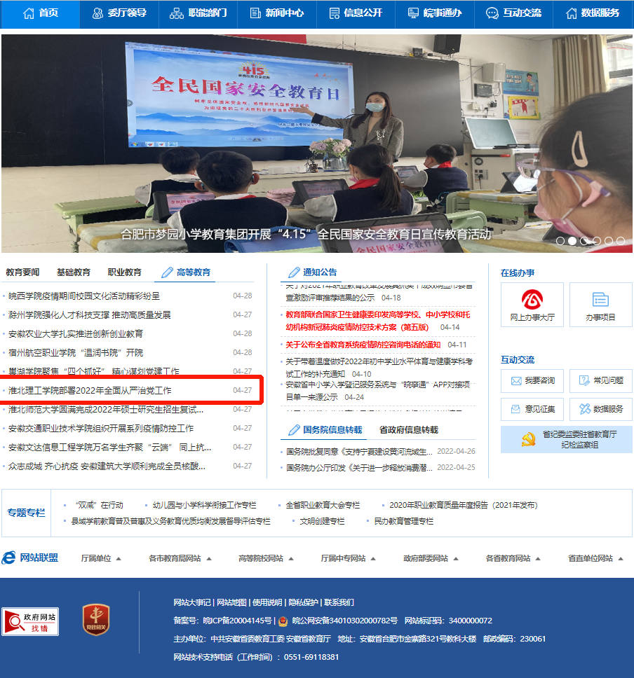安徽省政府 安徽省教育厅 淮北市政府 淮北师范大学 淮北市教育局 中国教育和科研计算机网 国家高等教育智慧教育平台