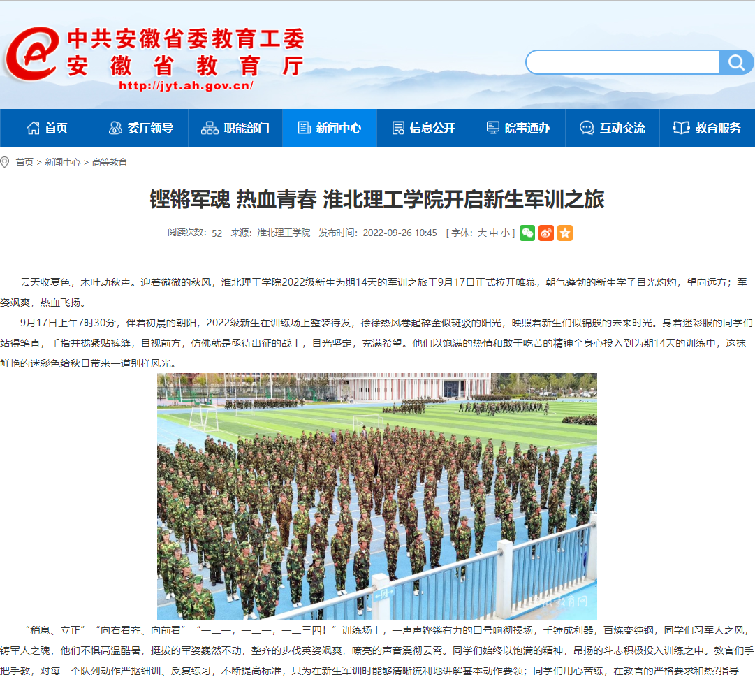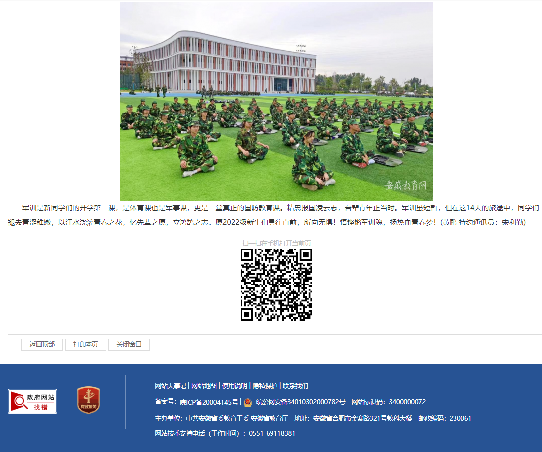 beat3652022级新生为期14天的军训之旅于9月17日正式拉开帷幕,朝气蓬勃的新生学子目光灼灼,望向远方;军姿飒爽,热血飞扬。安徽教育网对此进行了报道。