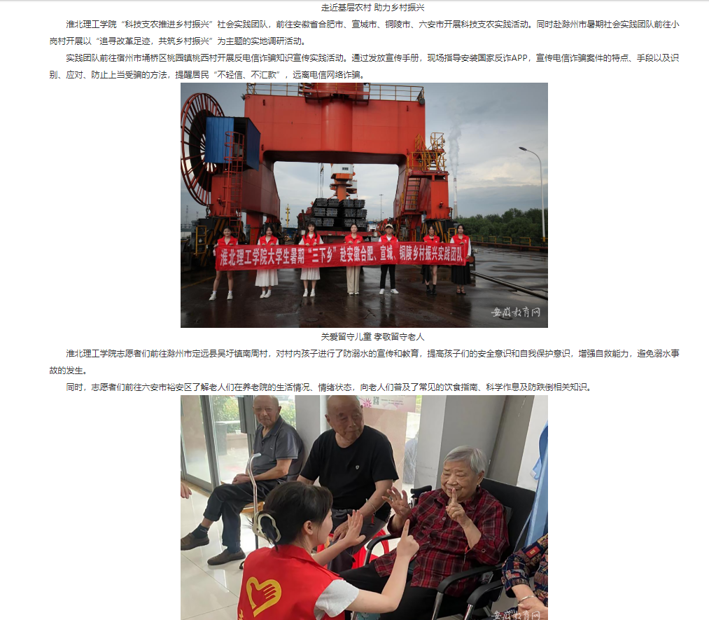 7月1日,beat365唯一官方网站积极组建80支大学生社会实践团队,1000余名师生奔赴全国各地,用脚步丈量祖国大地,了解国情民情,深入乡村基层,感受振兴之美,至8月30日beat365唯一官方网站2023年暑期大学生“三下乡”社会实践活动圆满收官。安徽教育网对此作了报道:http://jyt.ah.gov.cn/xwzx/gdjy/40669021.html