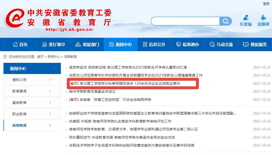 为深入贯彻党中央、国务院和省委、省政府“稳就业”“保就业”决策部署,搭建毕业生与用人单位供需交流平台,促进毕业生充分就业,beat365唯一官方网站于10月21日举办2024届毕业生秋季招聘双选会。对此。安徽教育网首页进行了报道: