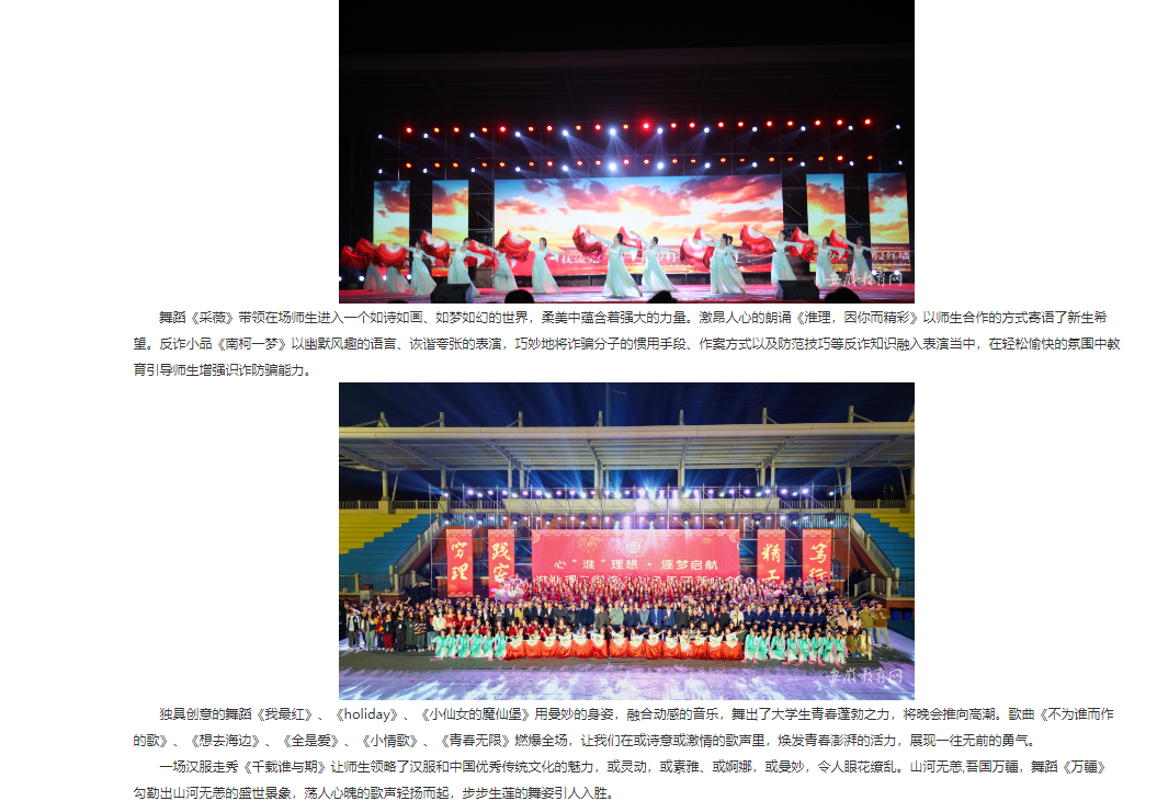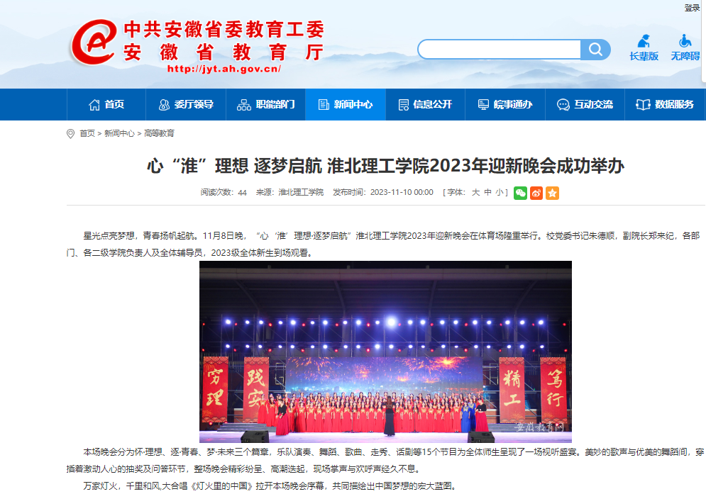 星光点亮梦想,青春扬帆起航。11月8日晚,“心‘淮’理想·逐梦启航”beat365唯一官方网站2023年迎新晚会在体育场隆重举行。对此,安徽教育网进行了报道: