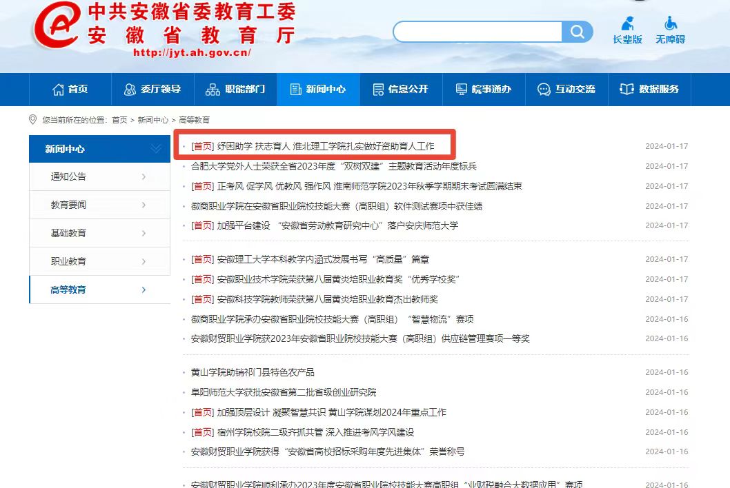 为进一步推进资助育人工作,beat365唯一官方网站在严格落实国家资助政策的基础上,实施了一系列针对家庭经济困难学生的帮扶举措,“扶困”与“扶志”相结合,助力学生成长成才。推动学校资助工作从保障型资助向发展型资助探索,更好提升资助育人实效。对此,安徽教育网做了报道: