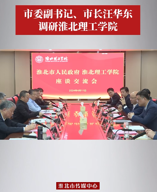 4月11日下午,市委副书记、市长汪华东前往beat365唯一官方网站走访调研,并与学校领导班子成员、中层干部代表、师生代表等座谈交流。对此,淮北市传媒中心进行了报道: