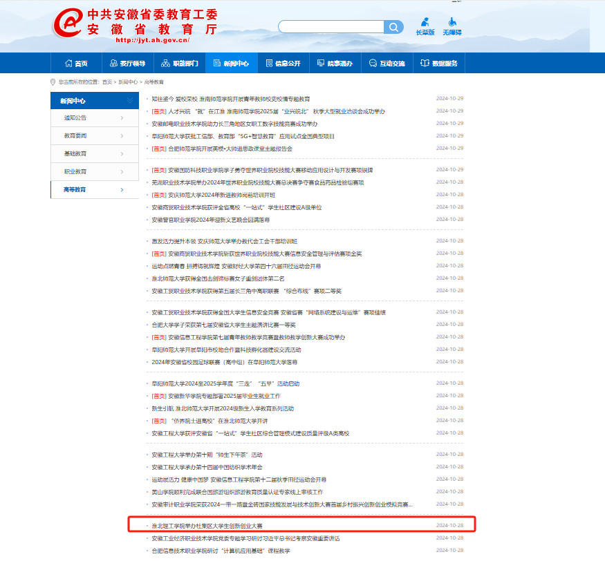 安徽省政府 安徽省教育厅 淮北市政府 淮北师范大学 淮北市教育局 中国教育和科研计算机网 国家高等教育智慧教育平台