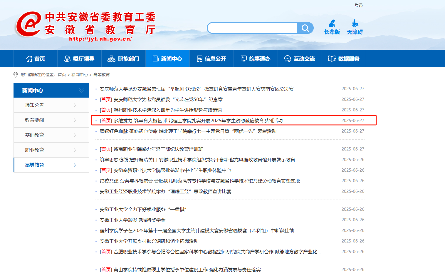 安徽省政府 安徽省教育厅 淮北市政府 淮北师范大学 淮北市教育局 中国教育和科研计算机网 国家高等教育智慧教育平台