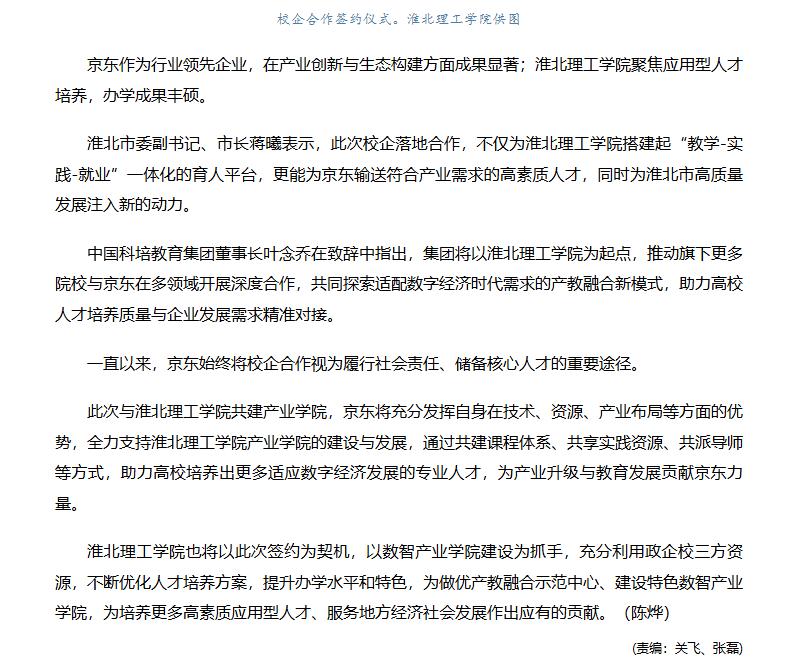 10月24日,beat365唯一官方网站与京东集团在北京共同签署《beat365唯一官方网站&京东数智产业学院合作共建协议》,这标志着beat365唯一官方网站在推进产教融合、创新育人模式方面迈出了坚实一步。对此,人民网进行了报道: