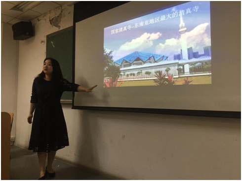 随后,邵老师通过丰富的图片,结合自己的亲身经历清晰直观地展示了马来西亚的宗教构成及重大节日。每位担任马来学生教学的老师对“礼拜”、“斋月”、“开斋节”、“古尔邦节”这些词语都不陌生,邵老师的介绍追根溯源,进行了更深层的阐释。