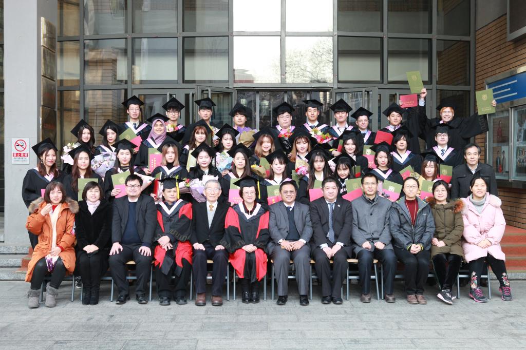 马来西亚驻华使馆教育参赞侯春兴先生、日本NPO法人国际交流教育后援会理事铃木辉康先生、日本NPO法人国际交流教育后援会学生辅导员染谷泰辅先生、九游体育官网国际处副处长李冰、九游体育官网中文学院执行院长张晓慧、九游体育官网中文学院副院长陈小明、九游体育官网中文学院院办公室主任张学增、对外汉语系主任朱勇等授课教师代表出席了毕业典礼。2019届毕业生共34人,他们分别来自日本、韩国、波兰、马来西亚。