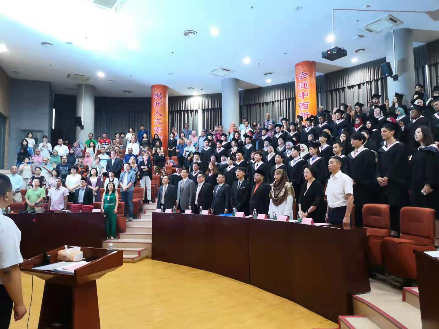 留学生办公室主任李冰在毕业典礼上致词,中文学院执行院长张晓慧为毕业生送上临别祝福。他们对同学们顺利毕业表示由衷祝贺,对同学们的未来寄予了热情的期待。