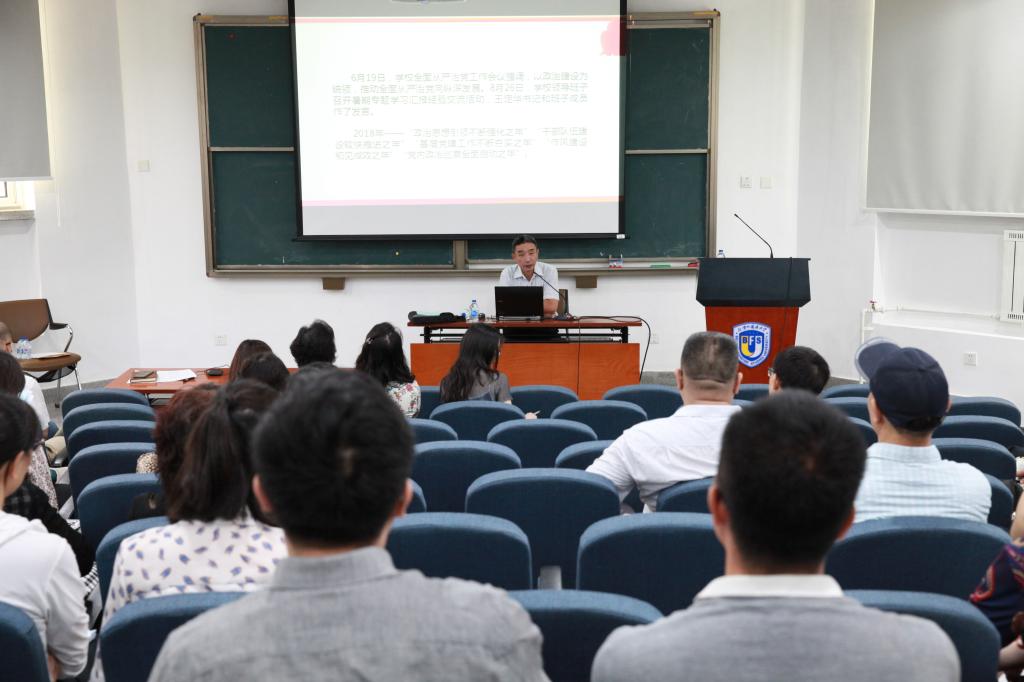 8月29日,中文学院召开全体教师会议,学习贯彻学校会议精神,动员落实新学期工作。执行院长张晓慧做《立足中文学院当前实际,努力实现中文学科建设重大目标》工作报告,党总支书记刘厚广主持会议并做了《抓牢政治建设,为实现学科建设目标凝神聚力》的工作动员。
