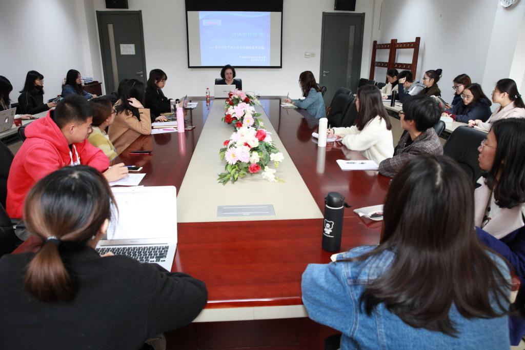 11月1日下午,中文学院张晓慧院长以“汉语国际传播与构建人类命运共同体”为主题讲党课,研究生第一、第二党支部参加党课学习,支部书记韩晓磊、傅小娱主持党课活动。