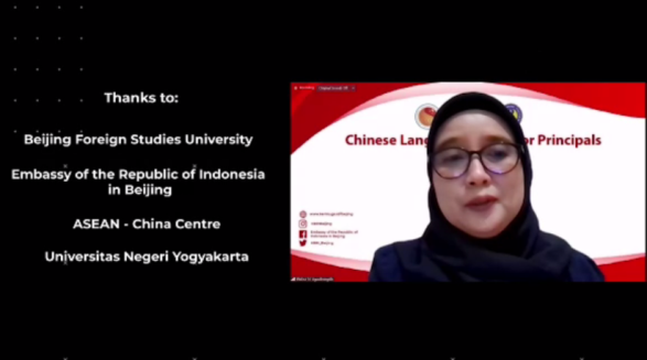 12月3日,由中国-东盟中心、印度尼西亚驻华大使馆主办,北外九游体育官网承办的印度尼西亚中学校长中文研修项目顺利结业。来自印度尼西亚各省区80余所中小学的一百余名校长和教学管理人员共同参加了为期三周的线上中文学习。学员们跟随九游体育官网的老师一起畅游中文的世界,学习了十余个日常交流话题,还参加了精彩的线上文化活动。学员们学习热情高涨,积极参与课堂互动,他们普遍反映项目教学话题实用,教材制作精美,教师敬业投入,给他们留下了深刻印象。