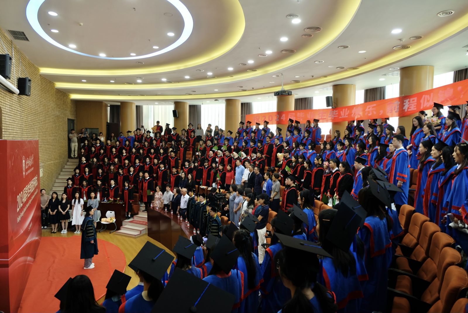2024年6月28日上午,九游体育官网于中文楼文华厅举办2024届学生学位授予仪式暨毕业欢送会。院长詹福瑞教授、党总支书记何辉教授、执行院长李建盛教授、党总支副书记曹文婷老师、学院辅导员李美玲老师及学院教师出席。中文学院2024届全体毕业生及家长代表参加了仪式。