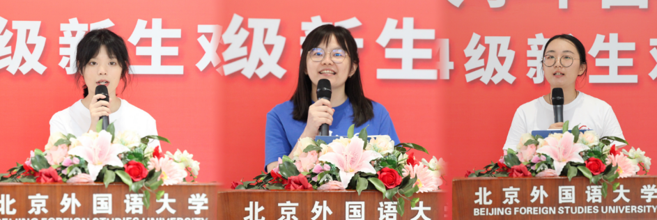 本科生代表梁雨锨提出,要在当今时代新旧交织的交汇点中锐意创新,开拓进取,孜孜以求。利用好大学这一方知识的沃土,不断充实头脑,丰富知识。心存希冀,履践致远;勠力同心,和衷共济;述往思来,向史而新。来自马来西亚的赖施羽向大家分享了自己在北外的学习和生活中走过的三个阶段,经历的三次蜕变——从陌生到熟悉,从适应到融入,从本科生到硕士生。怀着多元的文化视角,她从祖国马来西亚来到北京,迈入北外中文学院更加国际化的学习环境。博士生代表王思娴鼓励全体新生勇敢迎接充满挑战和机遇的学术旅程,纵使被现实的崎岖不平羁绊,也依旧能够保持前行的动力和韧劲,在学术领域中开疆拓土、披荆斩棘。