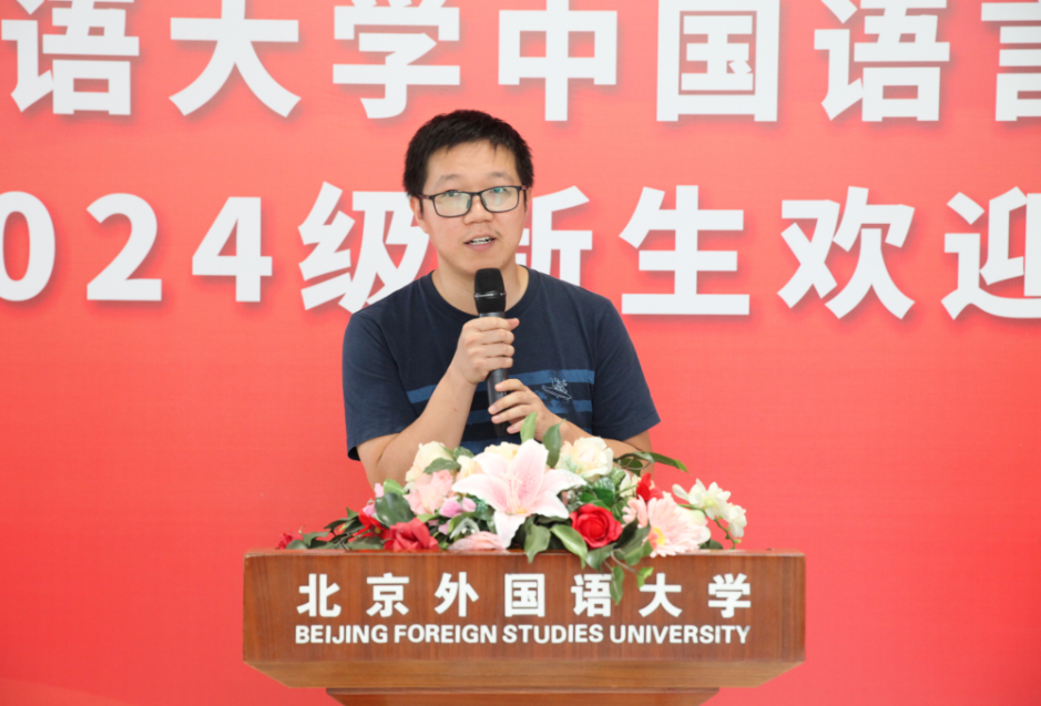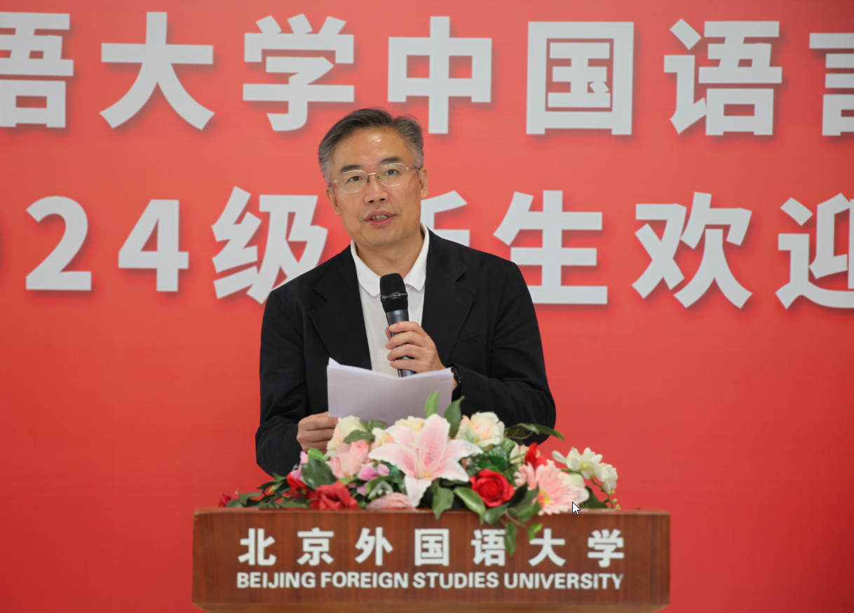 大会最后,何辉教授代表学院致辞。他首先回顾了北外中文学院的发展历史,希望同学们能够站在当前学院发展的新起点上,珍惜时光,充分利用各种学术资源和机会,全面发展。其次,他向新生们提出了五点期望:一是树立正确的价值观,二是保持对知识的渴求,三是保持身心健康,四是培养良好的审美情趣和创造力,五是尊重劳动、参与劳动。他希望同学们能够成为德智体美劳全面发展的社会主义建设者和接班人。