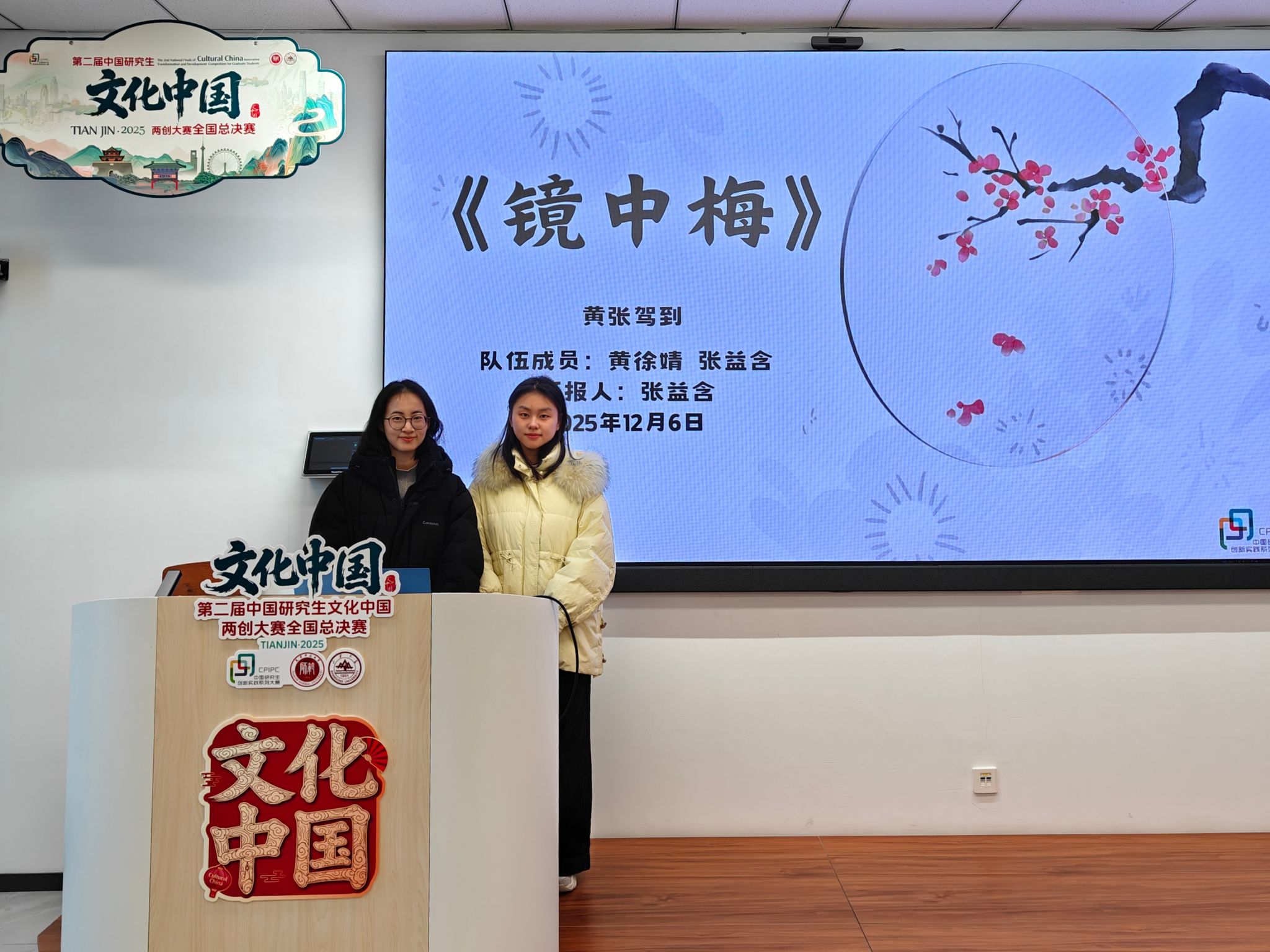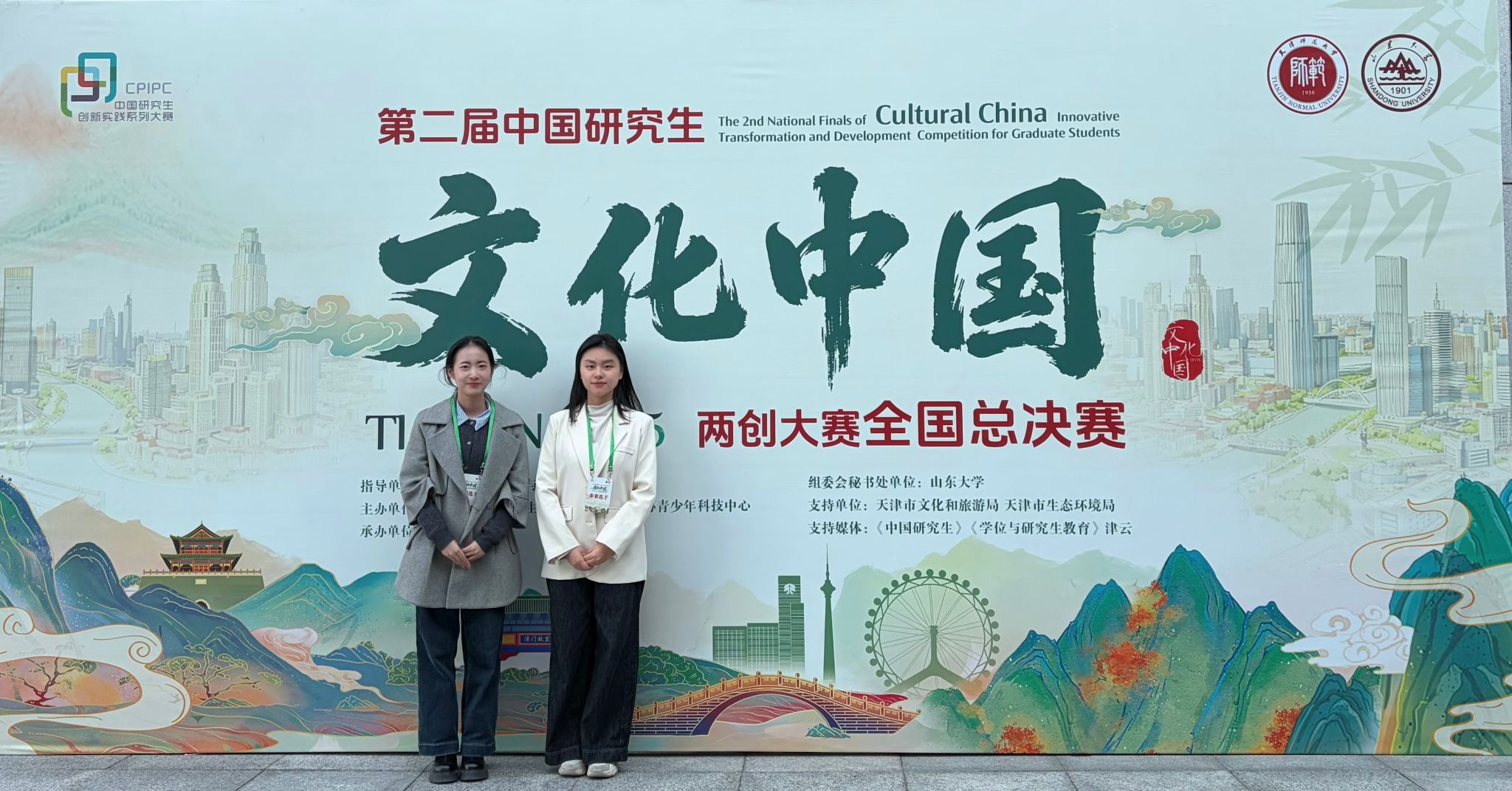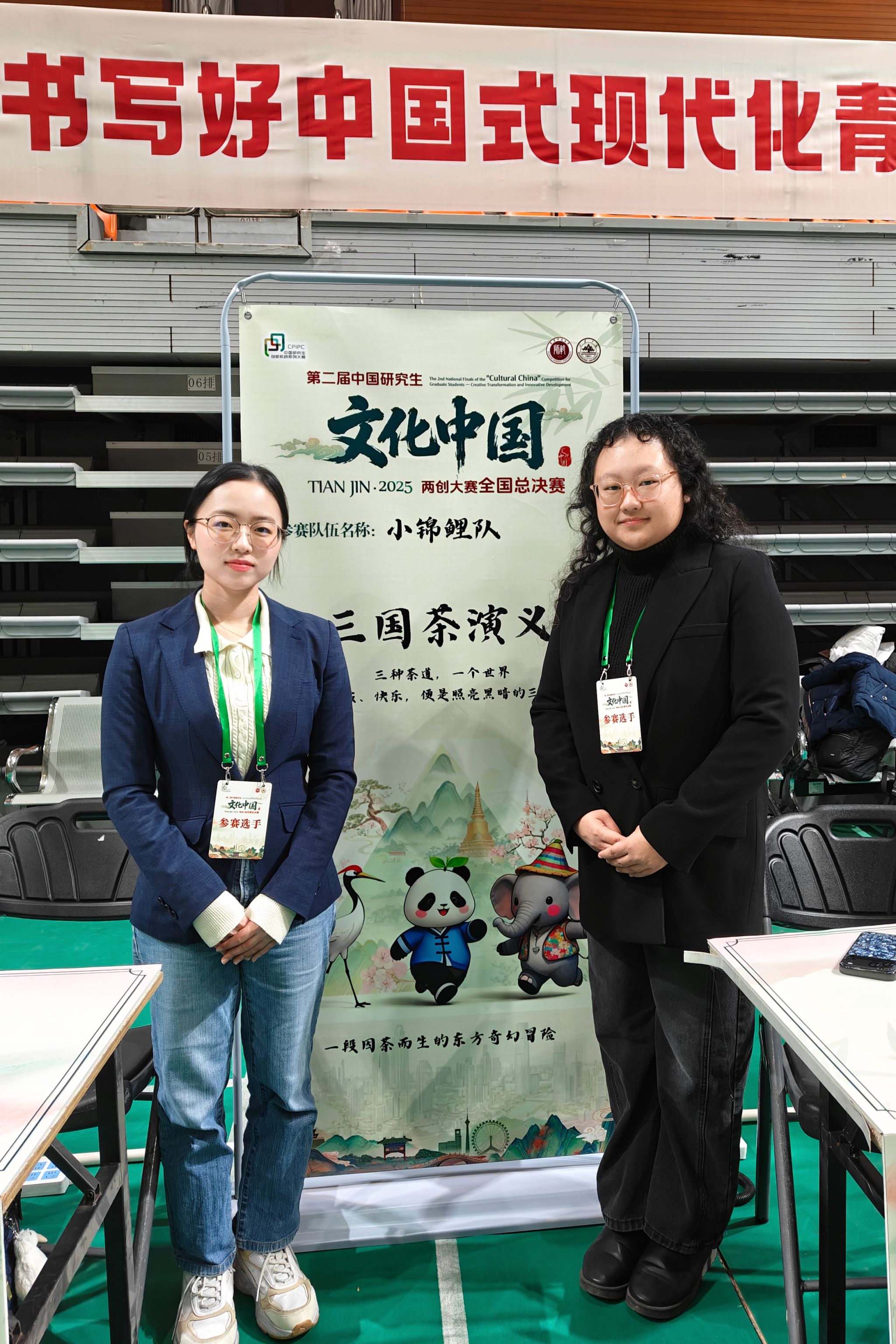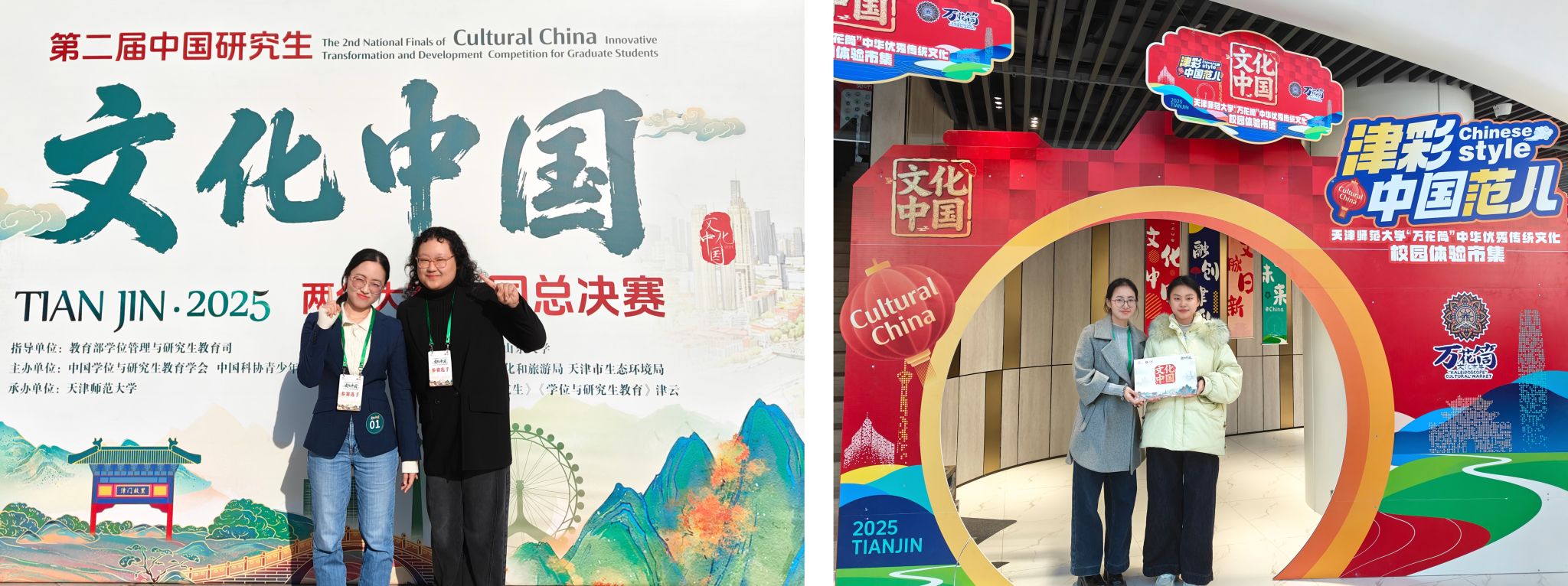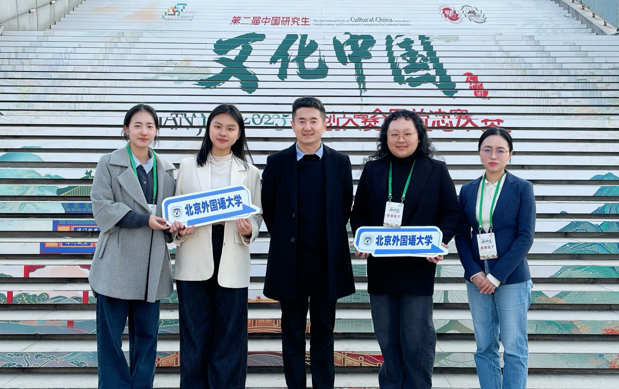 2025年12月7日,第二届中国研究生“文化中国”两创大赛全国总决赛圆满落幕。九游体育2024级硕士研究生黄徐婧、张益含组成“黄张驾到”队(指导教师:李建盛老师),留学生傅启闰、三浦充央组成“小锦鲤队”(指导教师:赵苗老师)共赴天津参加总决赛。两支队伍从全国4000余团队中脱颖而出,在最后283支队伍的角逐中同时斩获国家二等奖,充分展现了九游体育学子深厚的文化素养与扎实的实践创新能力。