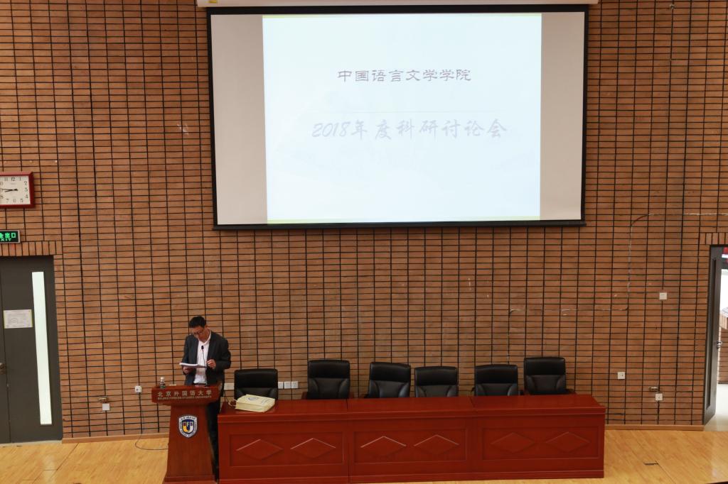 2019年4月13日,中文学院2018年度学术成果汇报暨科研讨论会在中文楼文华厅举行。方稚松主持研讨会,高育花做研讨总结,全体在岗老师参加会议。