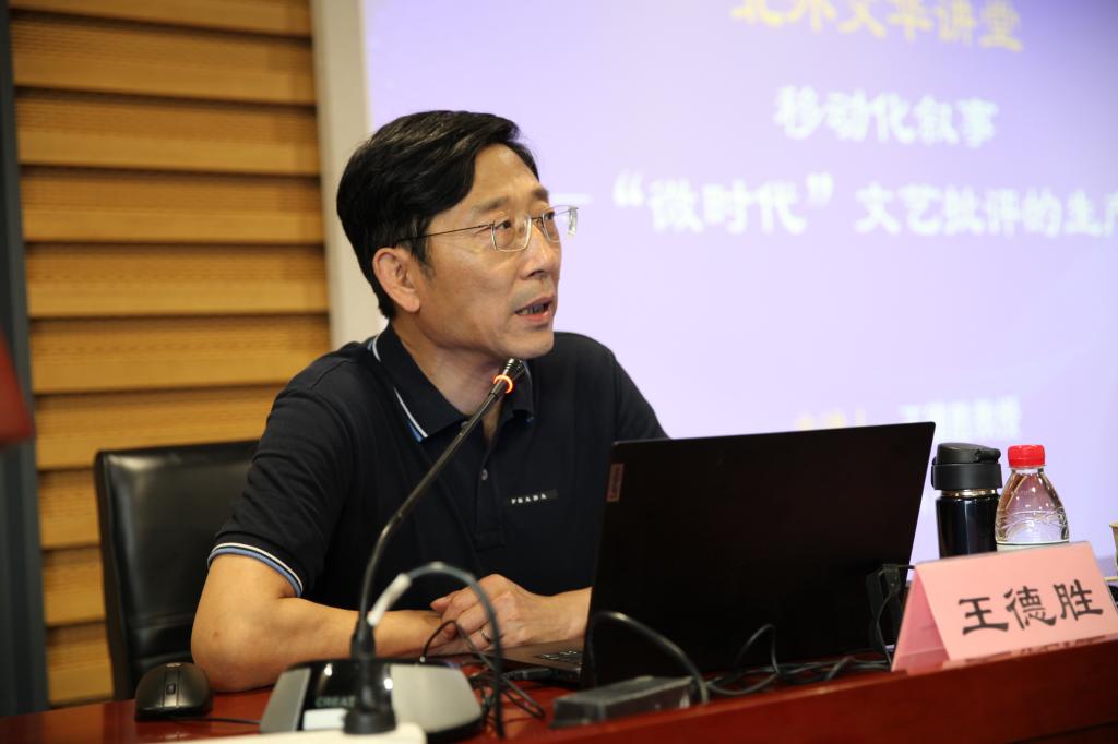 2024年5月22日下午,九游体育官网九游体育官网“北外文华讲堂”邀请首都师范大学艺术学部主任、艺术与美育研究院院长,中国文艺批评基地主任、文学院教授、博士生导师王德胜先生,作题为《移动化叙事——“微时代”文艺批评的生产特质》的学术讲座。讲座于九游体育官网图书馆报告厅举行,由九游体育官网执行院长李建盛教授主持,中文学院韩振华教授、李美玲老师以及师生百余人参加本次讲座。