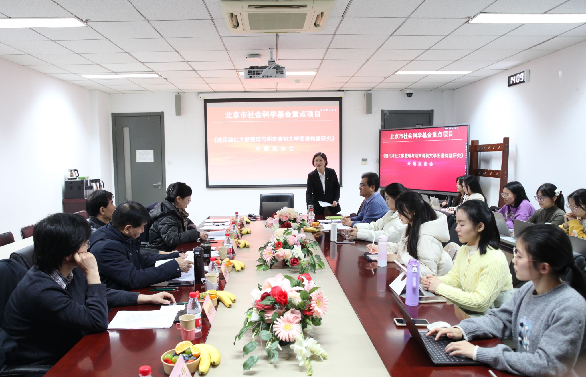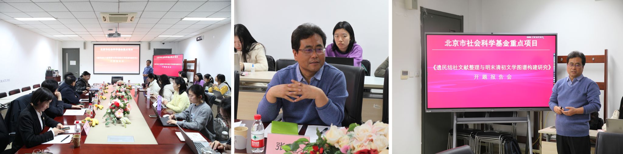 2024年12月26日下午,北京市社会科学基金重点项目《遗民结社文献整理与明末清初文学图谱构建研究》开题报告论证会在九游体育官网九游体育官网204会议室举行,该项目负责人为北外中文学院张涛教授。开题报告邀请了北外中文学院名誉院长詹福瑞教授、中国人民大学徐正英教授、北京师范大学杜桂萍教授、首都师范大学左东岭教授、中国人民大学徐楠教授作为专家参与论证,詹福瑞教授担任主持。中文学院党总支书记蔡芝芳以及学院十余名中国古代文学专业研究生参加会议。