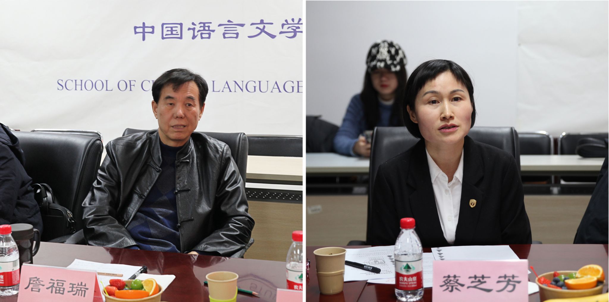 首先,詹福瑞教授宣布会议开始,介绍了与会专家并简要回顾了北外中文学院的学科建设情况。蔡芝芳书记致辞,对专家们的到来表示了热烈的欢迎和衷心的感谢,也期待学院未来能够和各位专家进一步合作。此外,她对项目的立意和价值给予肯定,预祝本次论证会圆满成功。